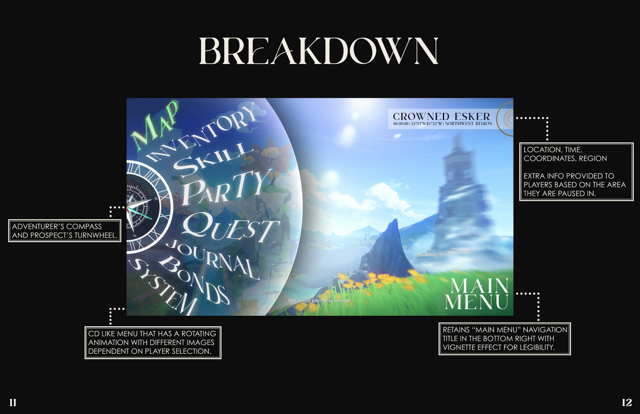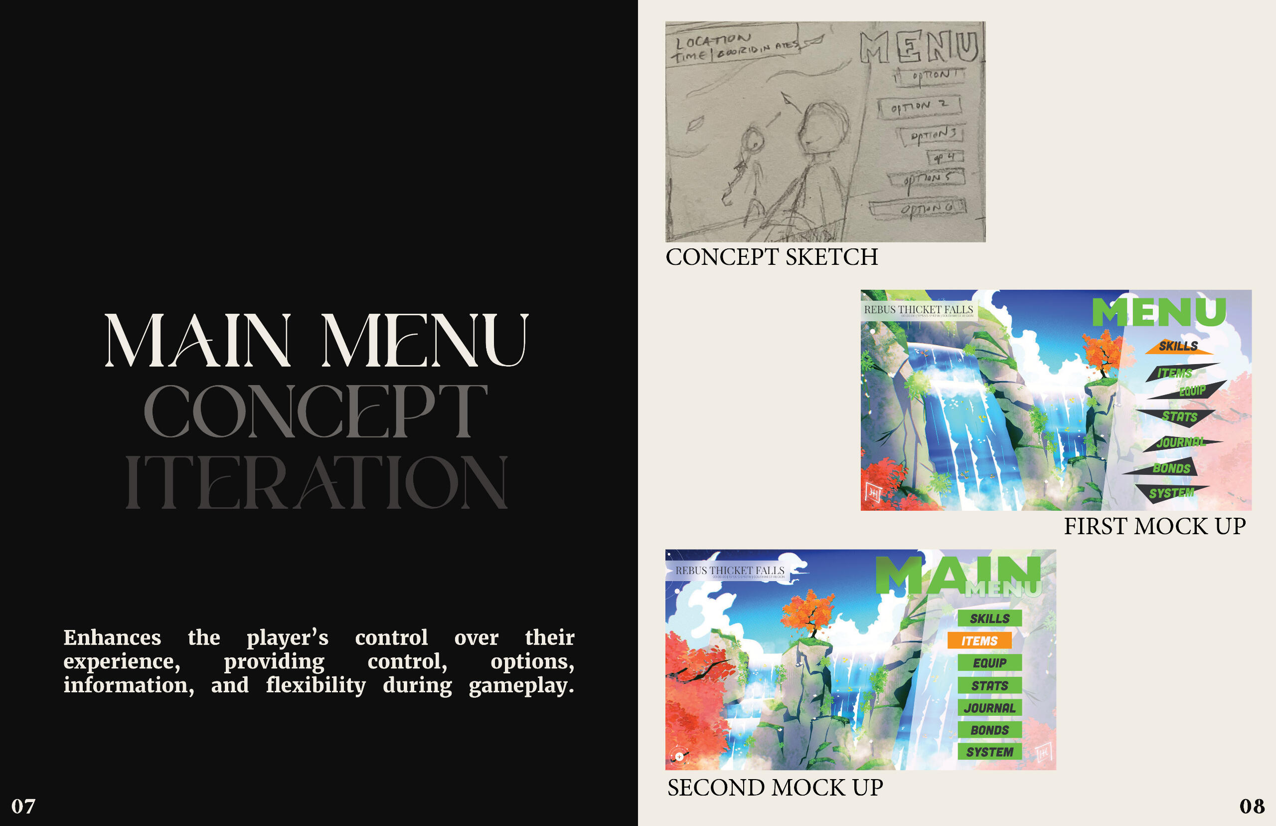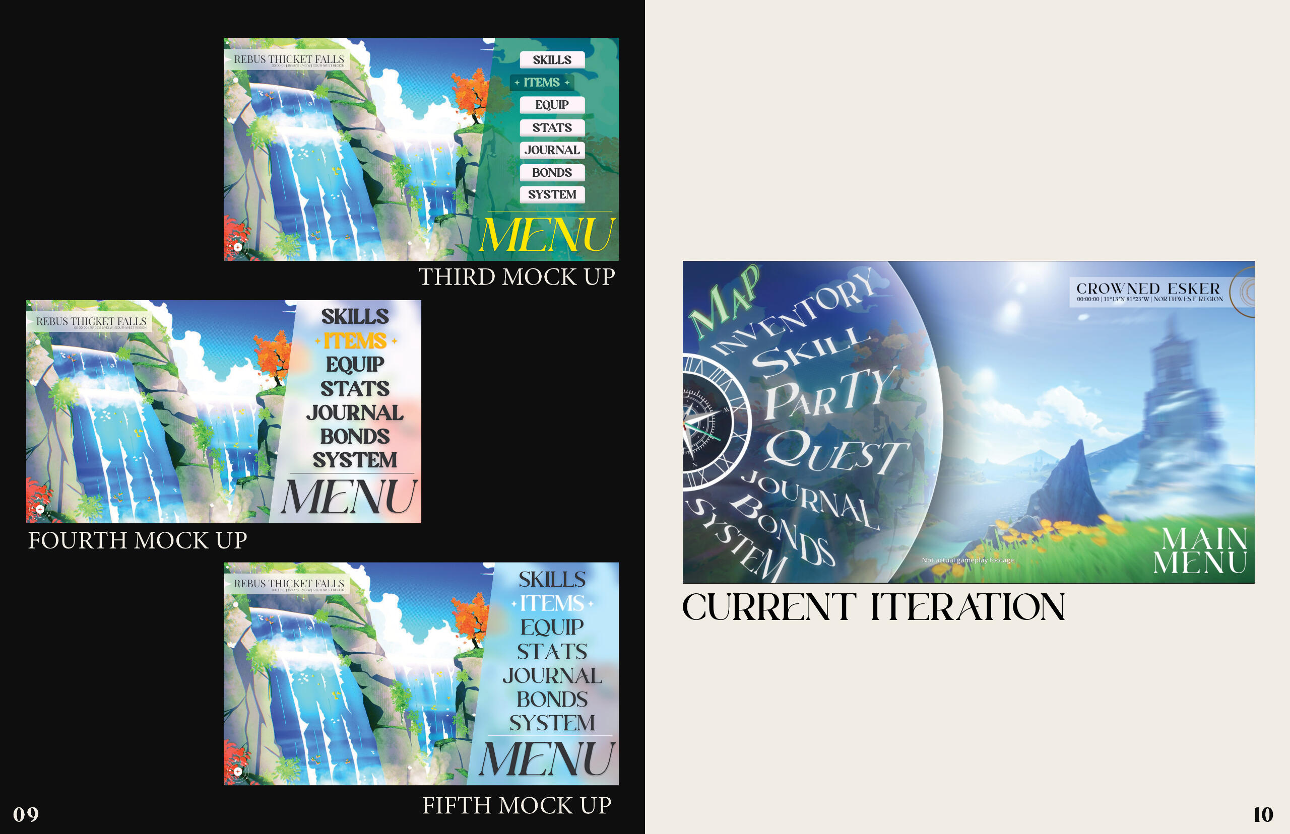 TERRASCAPE is a story-driven project first conceptualized in 2015. After going through various iterations of what medium its story would be told through, its main priority became game development.As a graphic designer, and TERRASCAPE's Creator, the mission was to discover what TERRASCAPE's identity was through the exploration of its brand and to conceptualize a game menu showcasing these themes. Other deliverables included creating mock ups, and animations for this menu system.Sketching up concepts and formulating ideas for the identity and menu system was a highly fun and enjoyable experience. Despite having creativity unbound, as TERRASCAPE is my own work in its entirety, the importance of balancing visual aesthetics with functionality and performance was kept in mind. Which included needing to consider UX design as a part of the creation process. UX/UI design goes hand-in-hand during game development, as no matter how aesthetically pleasing a project may be, if it's dysfunctional or not enjoyable to navigate or use by its users, it fails in its design.Following the fine line that is my own creativity blended with user-centered design was a fun challenge to partake in. Many times the project was returned to the drawing board (literally) for trying different concepts. No matter, what idea was being handled, there was always the inquiry and inclusion of how these menus would transition between one another. Being able to connect one menu to the next in a creative and fun way, was a high priority. Normal menu systems in games use plain navigational systems of various tabs and text work. Injecting a sense of immersion and creativity into each menu, and its transitions, was a challenge to consider but not impossible to accomplish.