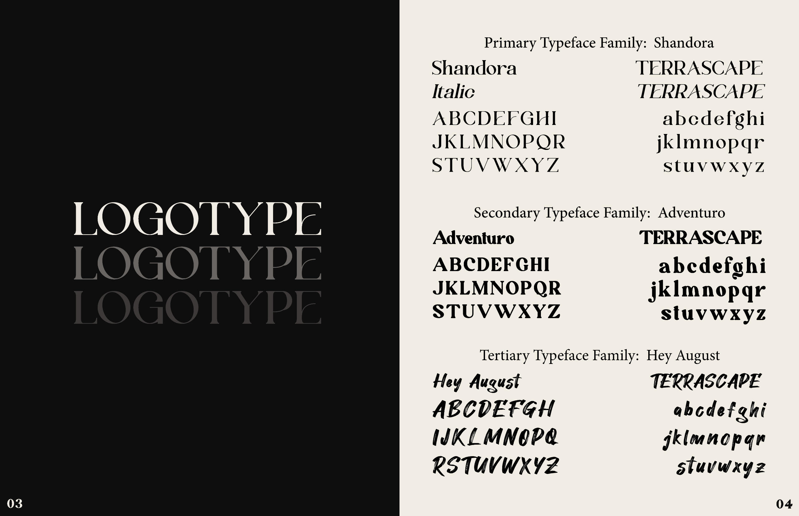 Brand identity and menu conceptualization for //Break Studios adventure role-playing game (RPG) TERRASCAPE.